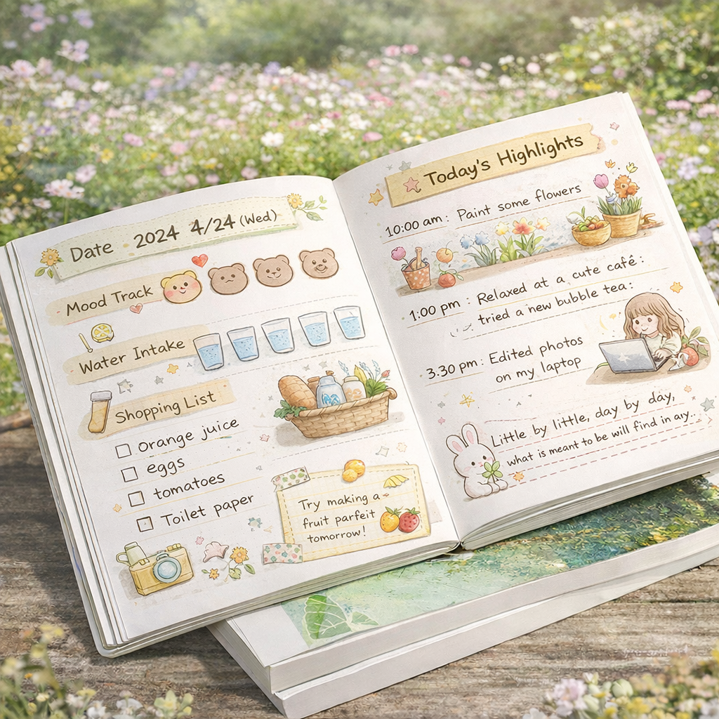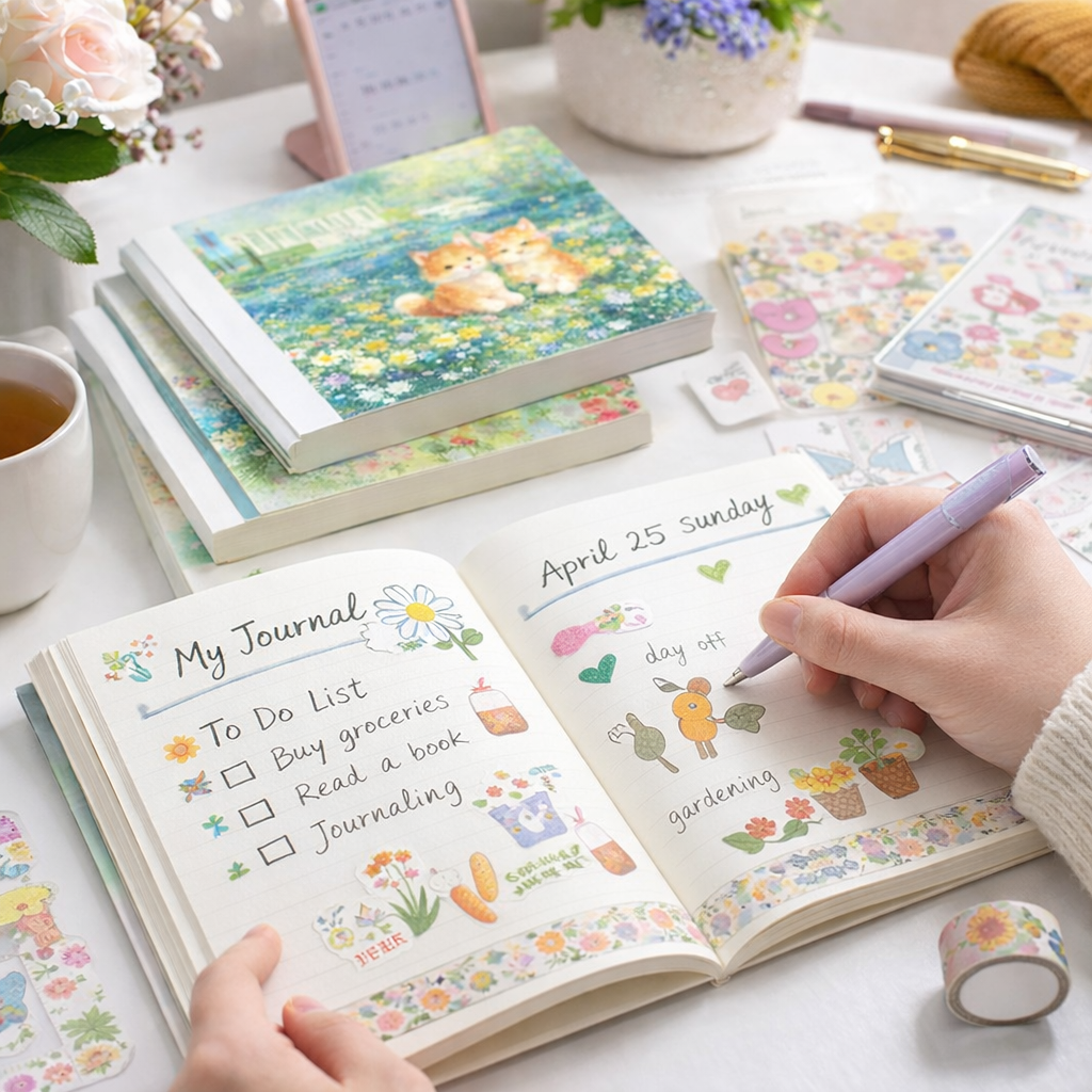 This square-shaped blank notebook is designed for those who love writing, drawing, journaling, or planning at their own pace. With its charming illustrated cover and clean blank pages inside, it offers both visual delight and practical usability.
